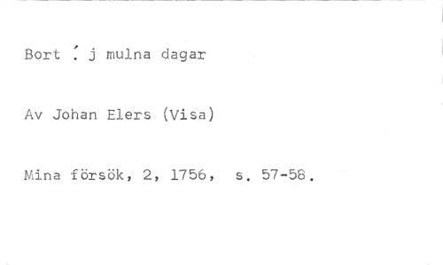 Bort : j mulna dagar //// Av Johan Elers (Visa) //// Mina försök, 2, 1756, s. 57-58.