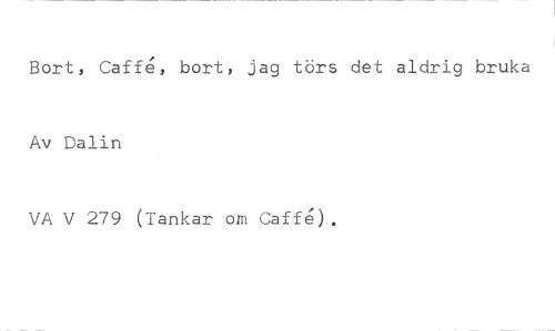 Bort, Caffe, bort, jag törs det aldrig bruka //// Av Dalin //// VA V 279 (Tankar om Caffe).