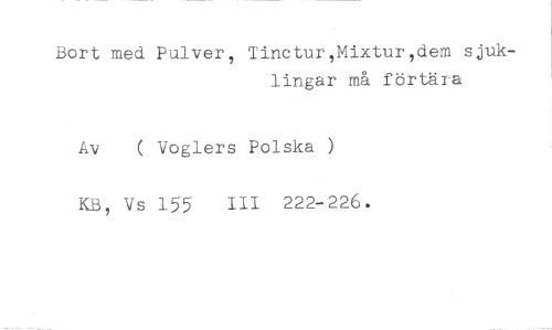 Bort med Pulver, Tinctur,Mixtur,dem sjuk- //// lingar må förtära //// Av ( Voglers Polska ) //// KB, Vs 155 III 222-226.
