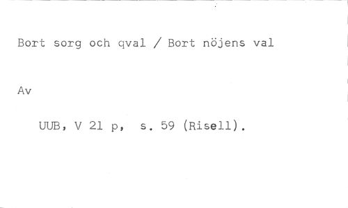 Bort sorg och qval / Bort nöjens val //// Av //// UUB, V 21 p, s. 59 (Risen).