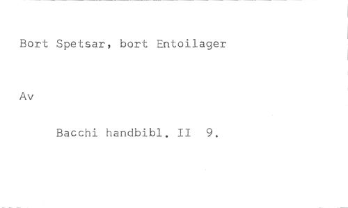 Bort Spetsar, bort Entoilager //// Av //// Bacchi handbibl. II 9.