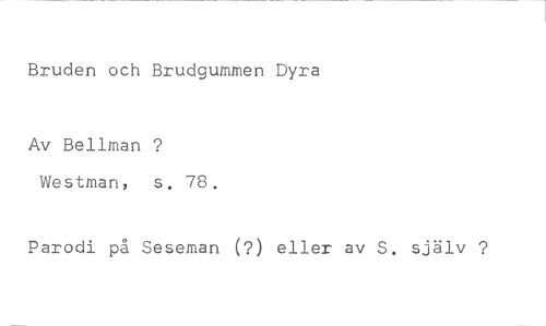 Bruden och Brudgummen Dyra //// Av Bellman ? //// Westman, s, 78. //// Parodi på Seseman (?) eller av S. själv ?