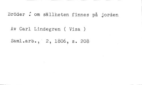 Bröder : om sällheten finnes på jorden //// Av Carl Lindegren ( Visa ) Saml.arb., 2, 1806, s. 208