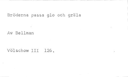 Bröderna passa glo och gräla //// Av Bellman //// Völschow III 126.