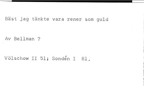 Bäst jag tänkte vara rener som guld //// Av Bellman ? //// Völschow II 51; Sonden I 81.