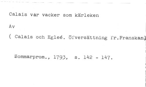 Calais vår vacker som kärleken //// Av //// ( Calais och Egle. öfversättning fr.Franskan) //// Sommarprom., 1793, s. 142 - 147.