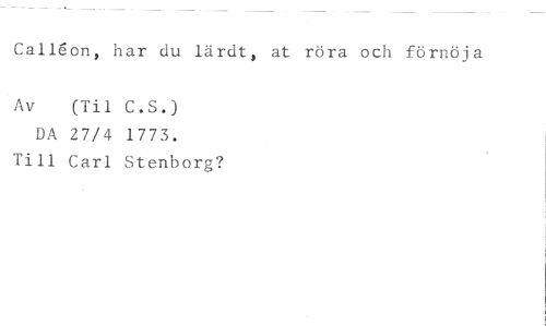Call6on, har du lärdt, at röra och förnöja //// Av (Til C.S.) //// DA 27/4 1773. //// Till Carl Stenborg?