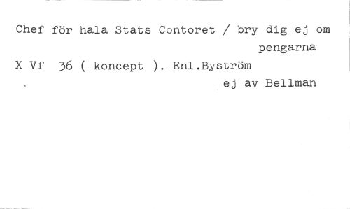 Chef för hala Stats Contoret / bry dig ej om //// pengarna //// X Vf 36 ( koncept ). Enl.Byström //// ej av Bellman