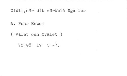 Cidli,när dit mörkblå öga ler //// Av Pehr Enbom //// ( Valet och Qvalet ) Vf 98 IV 5 -7.