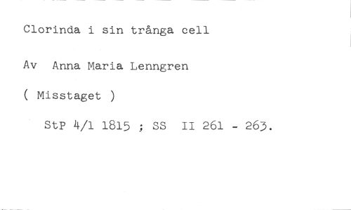 Clorinda i sin trånga cell //// Av Anna Maria Lenngren ( Misstaget ) //// Stp 4/1 1815 ; SS II 261 - 263.