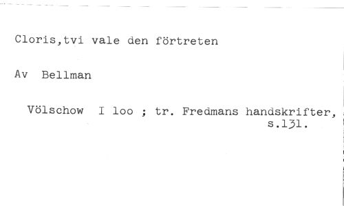 Cloris,t i vale den förtreten Av Bellman //// Völschow I loo ; tr. Fredmans handskrifter, //// s.131.