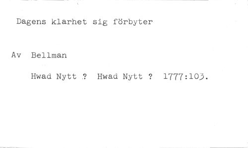 Dagens klarhet sig förbyter //// Av Bellman //// Hwad Nytt ? Hwad Nytt ? 1777:10J.