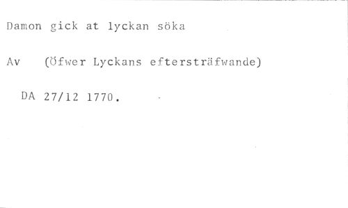 Damon gick at lyckan söka //// Av (Öfwer Lyckans eftersträfwande) //// DA 27/12 1770.