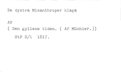 De dystra Misanthroper klaga //// AV //// ( Den gyllene tiden. ( Af MUchler.)) //// StP 8/1 1817.