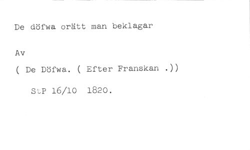 De döfwa orätt man beklagar //// Av //// ( De Döfwa. ( Efter Franskan //// S,P 16/10 1820.