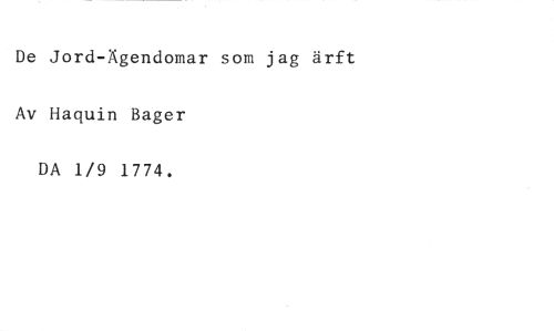 De Jord-Ägendomar som jag ärft //// Av Haquin Bager //// DA 1/9 1774.