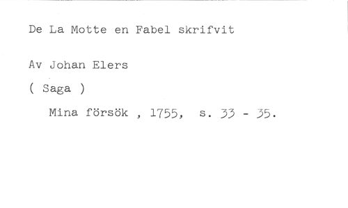 De La Motte en Fabel skrifvit //// Av Johan Elers ( Saga ) //// Mina försök , 1755, s. 33 -