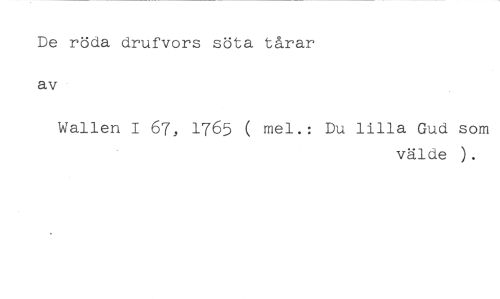 De röda drufvors söta tårar av //// Wallen I 67, 1765 ( mel.: Du lilla Gud som //// välde ).