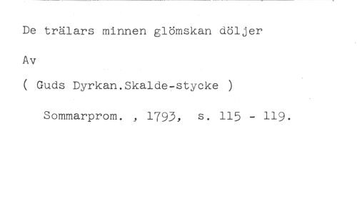 De trälars minnen glömskan döljer //// Av //// ( Guds Dyrkan.Skalde-stycke ) //// Sommarprom. , 1793, s. 115 - 119.