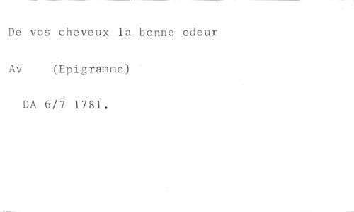 De vos chevoux la bonne odeur //// Av (Epigramme) //// DA 6/7 1781.