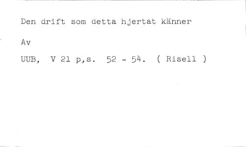 Den drift som detta hjertat känner //// Av //// UUB, V 21 p,s. 52 - 54. ( Risell )