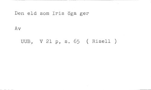 Den eld som Iris öga ger Av //// UUB, V 21 p, s. 65 ( Risell )