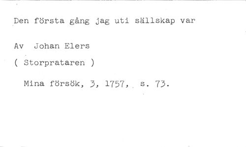 Den första gång jag uti sällskap var //// Av Johan Elers ( Storprataren ) //// Mina försök, 3, 1757, s. 73.