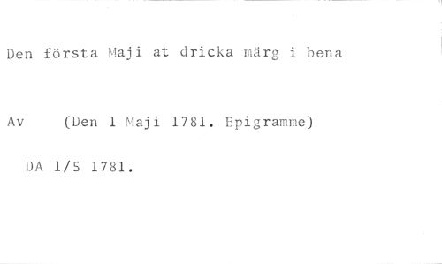 Den första Maji at dricka märg i bena //// Av (Den 1 Maji 1781. Epigramme) //// DA 1/5 1781.