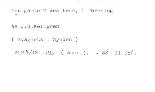 Den gamle Claes tror, i förening //// Av J.H.Kellgren //// ( Svaghets - Synden ) //// StP 4/12 1793 ( anon.). - SS II 356.
