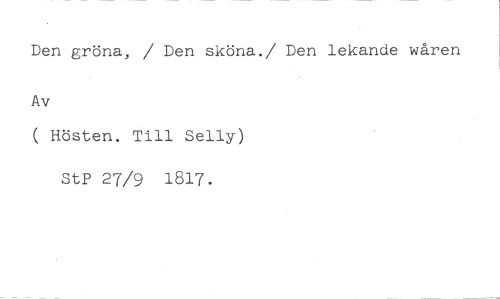 Den gröna, / Den sköna./ Den lekande wåren //// Av //// ( Hösten. Till Selly) //// StP 27/9 1817.