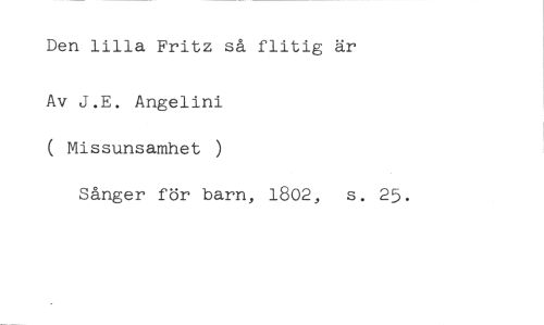 Den lilla Fritz så flitig är //// Av J.E. Angelini ( Missunsamhet ) //// Sånger för barn, 1802, s. 25.