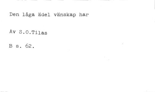 Den låga ädel vänskap har Av S.O.Tilas //// B s. 62.