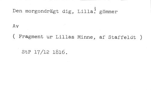 - //// Den morgondrägt dig, Lilla.1 gömmer //// Av //// ( Fragment ur Lillas Minne, af Staffeldt ) //// StP 17/12 1816.