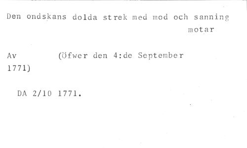 Den ondskans dolda strek med mod och sanning //// motar //// Av (Öfwer den 4:de September //// 1771) //// DA 2/10 1771.