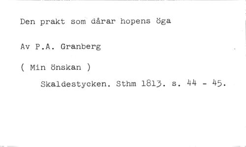 Den prakt som dårar hopens öga Av P.A. Granberg //// ( Min önskan ) //// Skaldestycken. Sthm 1813. s. 44 - 45.