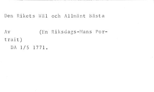 Den Rikets Wäl och Allmänt Bästa //// Av (En Riksdags-Mans Por- //// trait) //// DA 1/5 1771.