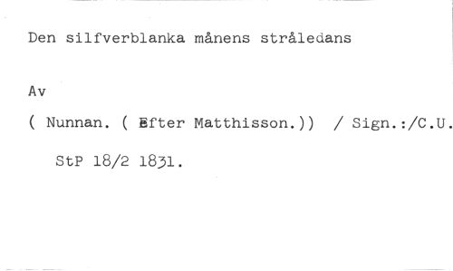 Den silfverblanka månens stråledans //// Av //// ( Nunnan. ( Efter Matthisson.)) / Sign.:/C.U. //// stP 18/2 1831.