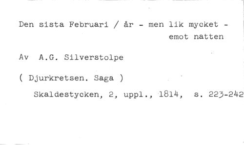Den sista Februari / år - men lik mycket - //// emot natten //// Av A.G. Silverstolpe //// ( Djurkretsen. Saga ) //// Skaldestycken, 2, uppl., 1814, s. 223-242