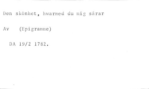 Den skönhet, hwarmed du mig sårar //// Av (Epigramme) //// DA 19/2 1782.