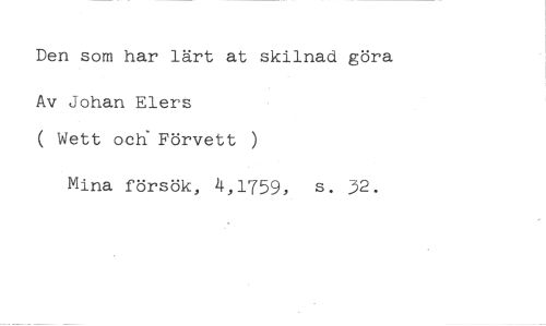 Den som har lärt at skilnad göra //// Av Johan Elers //// ( Wett och Förvett ) //// Mina försök, 4,1759, s. 32.