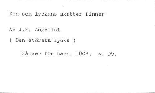 Den som lyckans skatter finner //// Av J.E. Angelini //// ( Den största lycka ) //// Sånger för barn, 1802, s. 39.