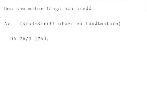 Den som mäter längd och bredd //// Av (Brud-Skrift öfwer en Landtmätare) //// DA 26/9 1769.