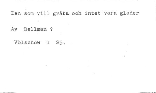 Den som vill gråta och intet vara glader //// Av Bellman ? Völschow I 25.