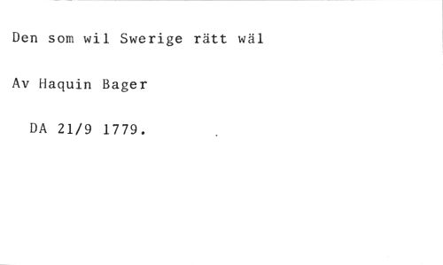 Den som wil Swerige rätt wäl //// Av Haquin Bager //// DA 21/9 1779.