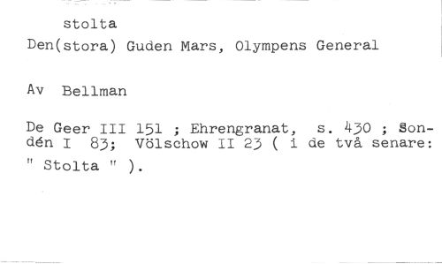 stolta //// Den(stora) Guden Mars, Olympens General Av Bellman //// De Geer III 151 ; Ehrengranat, S. 430 ; son-d61 I 83; Völschow II 23 ( i de två senare: //// " Stolta " ).