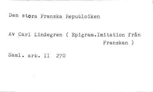 Den stora Franska Republoiken //// Av Carl Lindegren ( Epigram.Imitation från //// Franskan ) //// Saml. arb. II 270
