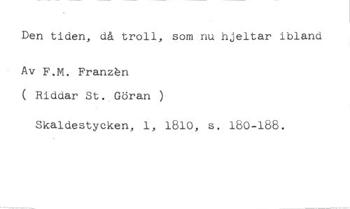 Den tiden, då troll, som nu hjeltar ibland //// Av F.M. Franzén //// ( Riddar St. Göran //// Skaldestycken, 1, 1810, s. 180-188.