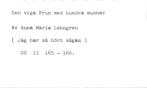 Den viga Frun med hundra munnar //// Av Anna Maria Lenngren //// ( Jag har så hört sägas ) SS II 165 - 166.