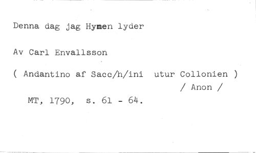 Denna dag jag Hymen lyder Av Carl Envalisson //// ( Andantino af Sacc/h/ini utur Collonien ) //// / Anon / ////MT, 1790, s. 61 - 64.