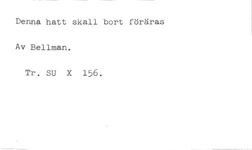 Denna hatt skall bort föräras Av Bellman. //// Tr. SU X 156.